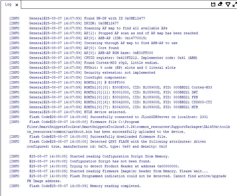 Figure 6 SmartSnippetsToolbox™ QSPI Programmer successful connection Log.