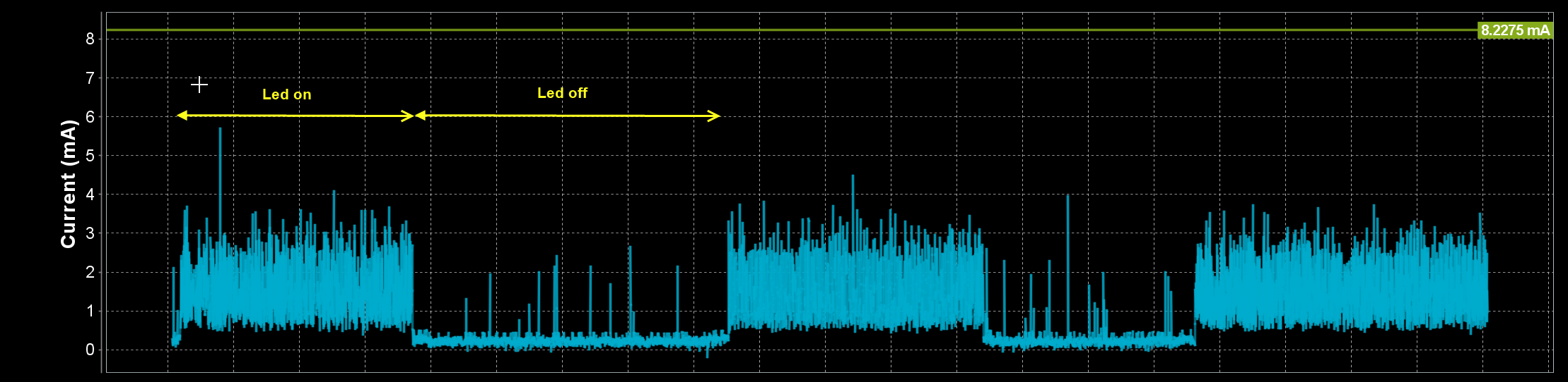 Press and release the K1 button on the Pro Development Kit. Verify the increased power consumption when the device is in active mode and the Led is on.