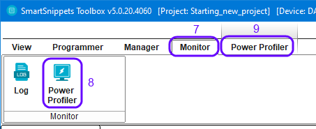 Select Monitor(7) and the Power Profiler (8 & 9)
