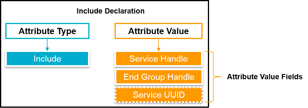 Given that four octets are used for handles in the Attribute Value fields, a full 128-bit Service UUID will not fit into the standard response packets used to find the included services. Therefore, when the included service has a 128-bit UUID, the Service UUID is not part of the value declaration. This means that an additional Attribute Protocol read request is required to find the type of the service included.