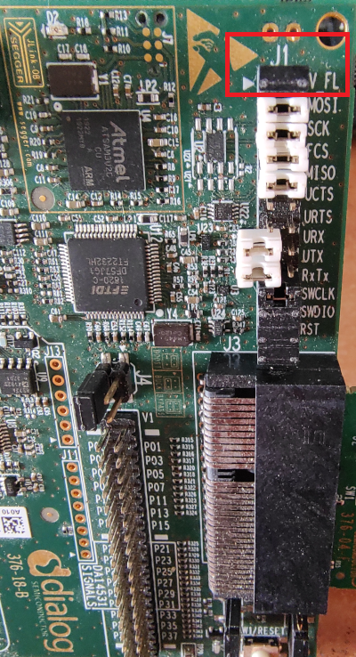 - If motherboard has onboard SPI flash, e.g. 376-18-B, remove the jumper J1 V_FL to not supply the onboard flash and not consume more few mA. Figure 154