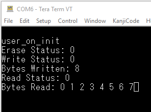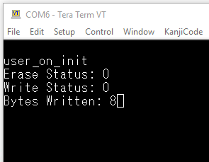 Now that the flash sector has been erased we can write some data to it. To do this add the following code to the user_on_init function just after the code you added to erase the flash: