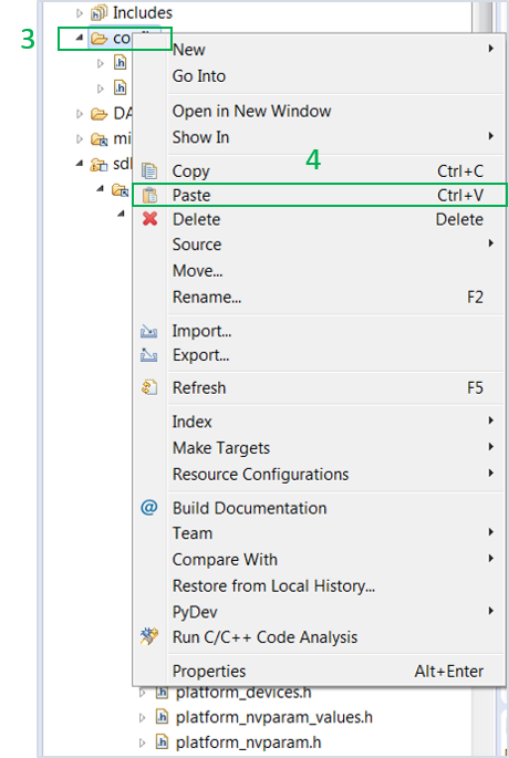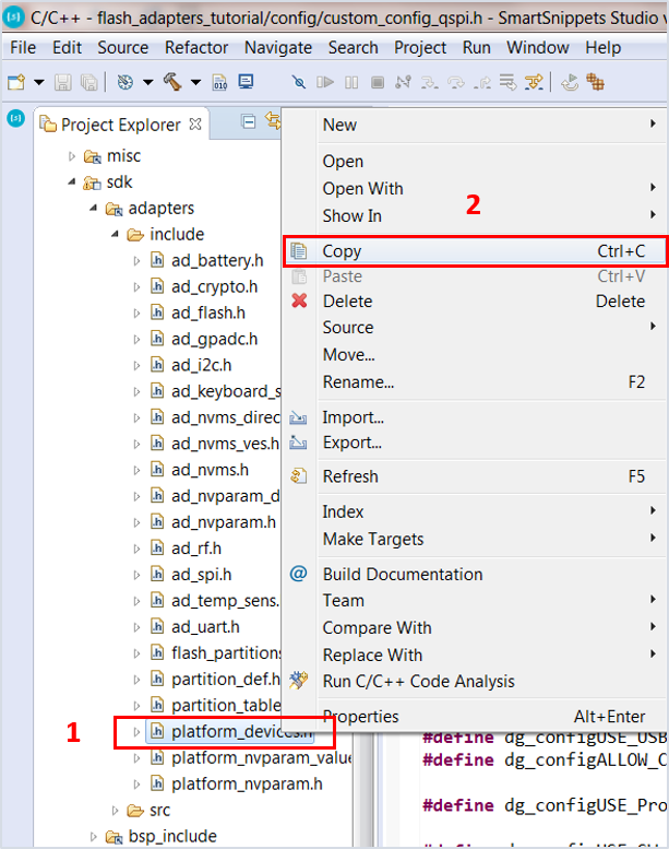 /sdk/adapters/include/platform_devices.hheader file (1) and select Copy (2).